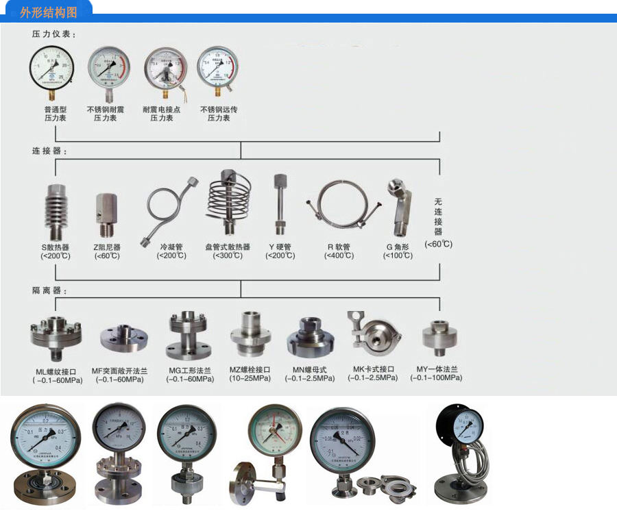| 产品名称 | 产品型号 | 连接方式 | 测量范围(MPa) |