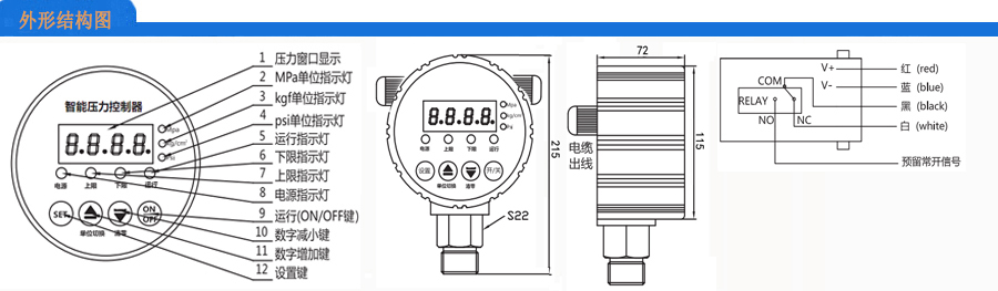 输出信号:继电器信号输出上、下限(常开、常闭任意)
