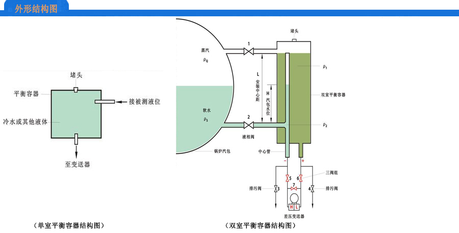 结构形式:单室平衡容器、双室平衡容器、普通型、带补偿型