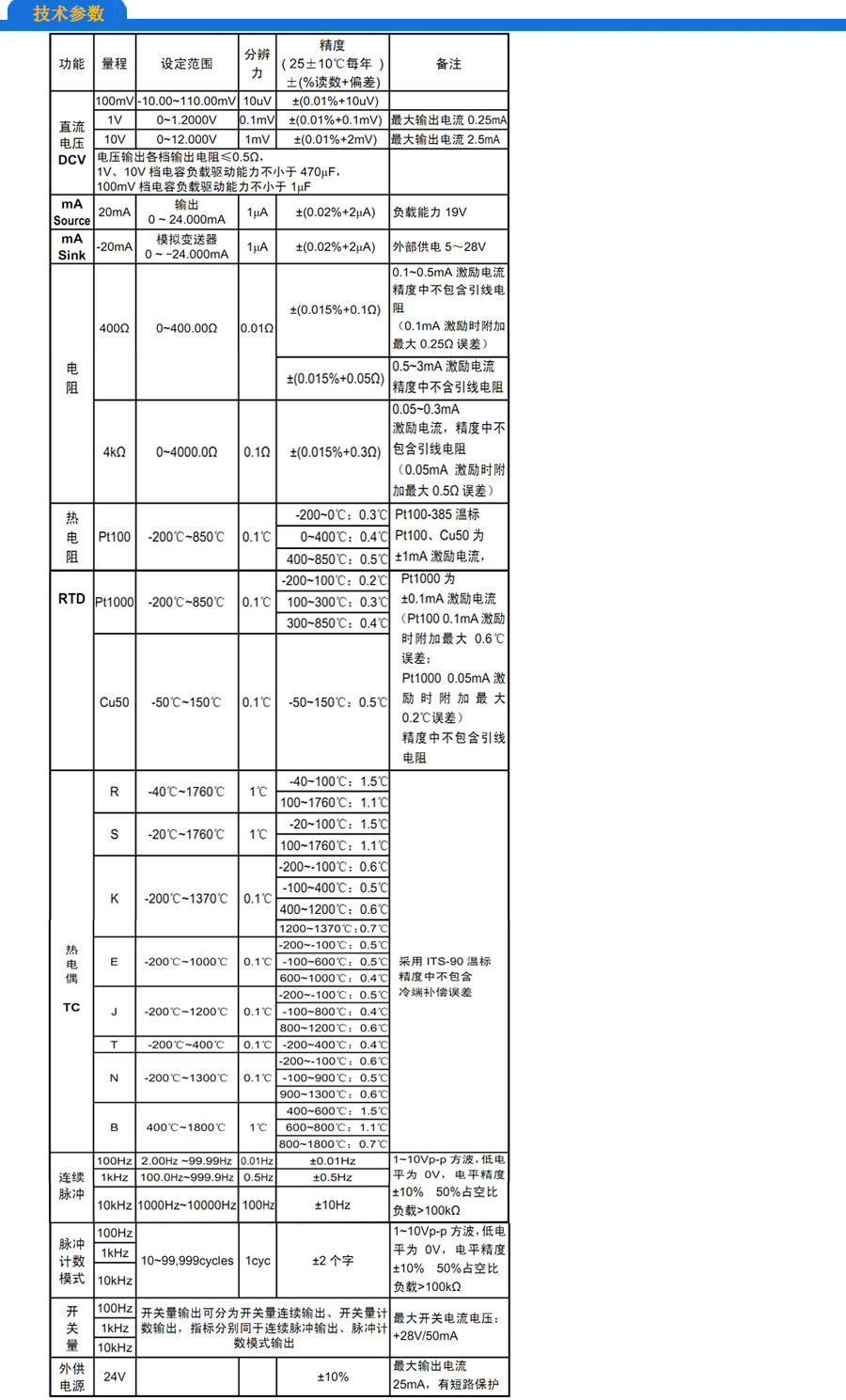 热电阻(RTD:Pt100,Pt1000,Cu50 (支持4线制电阻输出