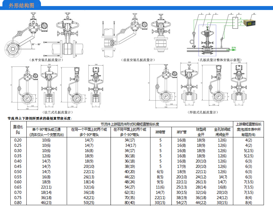 孔板流量计选型表: