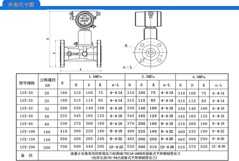 PN≤1.6MPa为铝合金外壳; PN≤4.0MPa为铸钢或不锈钢外壳;PN>4.0MPa为特殊规格;请在订货时注明。 |