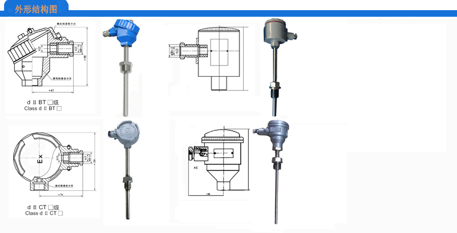 WZ系列防爆热电阻采用铸铝防爆接线盒,是一种工业现场常用的温度测量传感器,根据电阻的热效应,利用物质在温度变化时,其电阻值也随着发生变化的特征来测温的,当阻值变化时,工作仪表便显示出阻值所对应的温度值。根据国家规定装配热电阻应符合IEC国际标准分度号的Pt100铂热电阻和符合标准分度号的Cu50铜热电阻两大类装配式、统一设计型热电阻,目前常用分度号为Pt100,以及部分使用Pt1000。通常与显示仪表、记录仪和数字调节仪等配套使用,用于温度的测量显示与控制等用途。