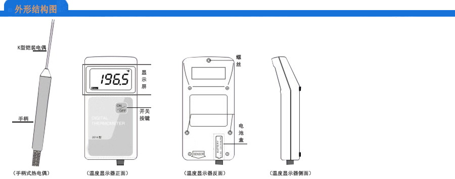 - SR-W901A系列便携式数字温度计为接触式测温仪表,测量的前提是传感器和感温部位(多在前端10mm以内)要与被测物体充分接触以迅速传导热量,使传感器敏感元件的温度与被测物的温度尽