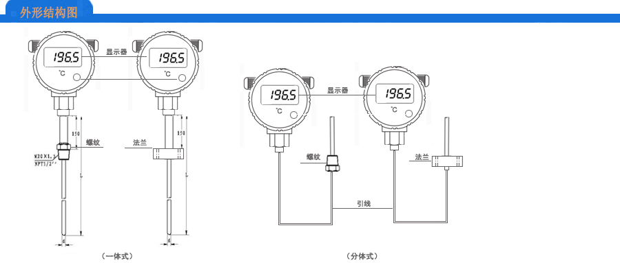 测量范围:-200~600℃(电阻型)、-50~1100℃(电偶型)