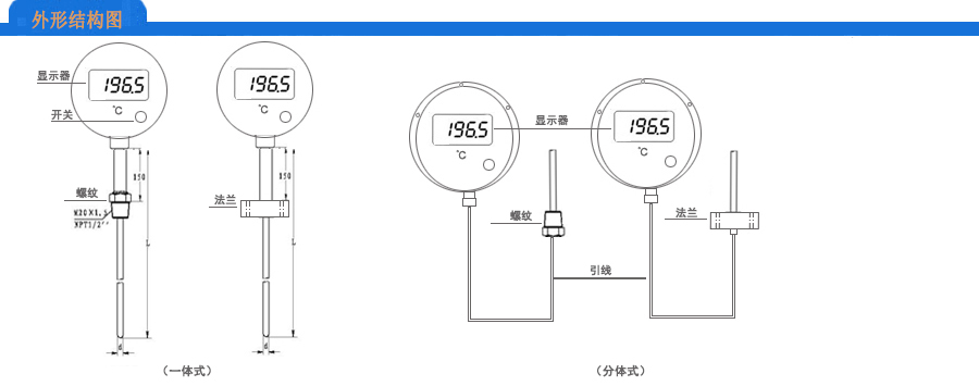 数字式温度计(不锈钢表头) 数字式温度计(酚醛压塑表头) 数字式温度计(铸铝表头) |