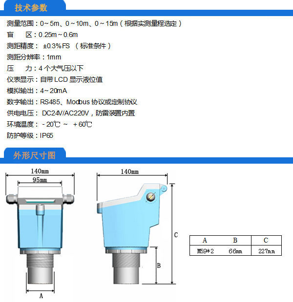 超声波液位计选型表: