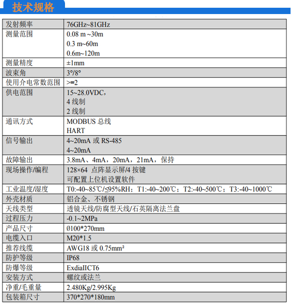 雷达物位计(80G调频)
