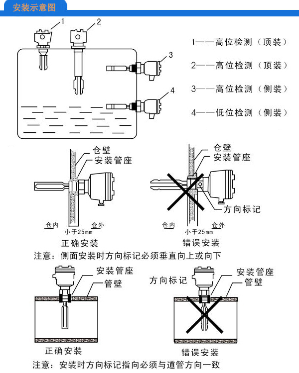 8、 被测介质密度:固体≥0.1g/cm3;液体≥0.7g/cm3