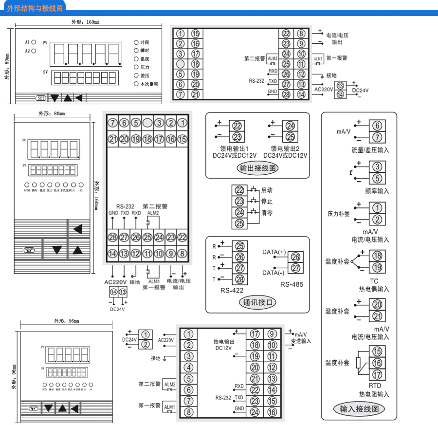 横式160×80mm (开孔152×76mm) 竖式80×160mm (开孔76×152mm) 方式96×96mm (开孔92×92mm) |